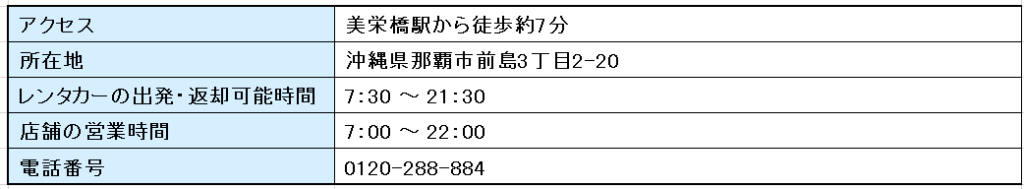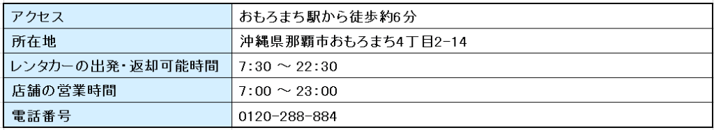 Blossom Naha is on the Yui Rail line.Approximately 5 minutes walk from Miebashi StationIt is located in the popular tourist spot of Kokusai Street, which is just a 1-minute walk away, making it a great place to stay for sightseeing.Between 7:00 and 23:00You can pick up and return your rental car at this location, so it's perfect for after enjoying shopping on Kokusai Street or if you want to leave early in the morning.